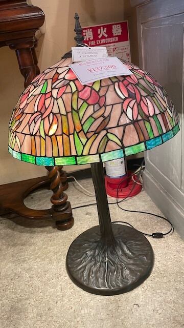 ステンドグラスの直径50cmのランプは、ガラスが重いのでベースの支柱が無垢でしっかりしたものでないと倒れてしまいます。安定感があり木の幹のような太さです。 サイズ:直径50cmX高さ80cm 感謝・売り尽くし・SALE】 値段:¥275,000→¥137,500